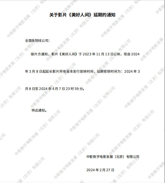 《美好人间》第四次密钥延期的通知