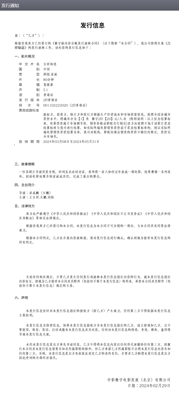 《吉祥如意》发行通知(中影综合业务服务平台)