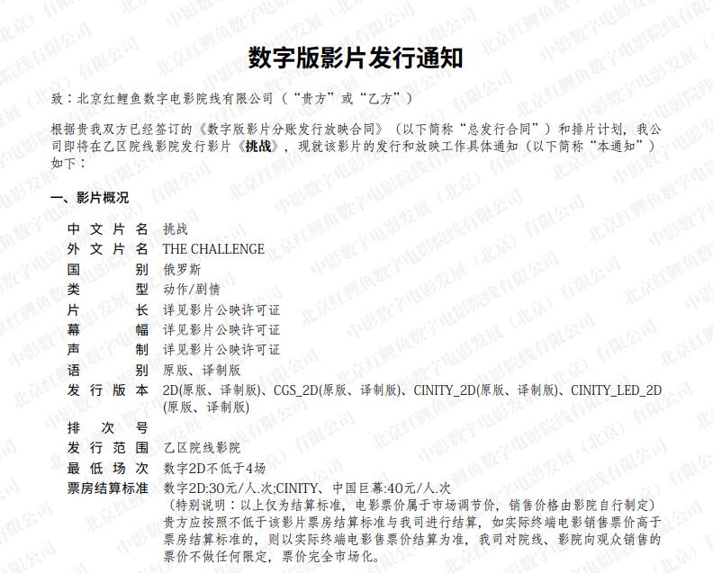 《挑战》数字版影片发行通知