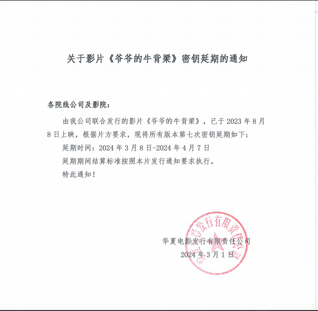 《爷爷的牛背脊》第七次密钥延期的通知