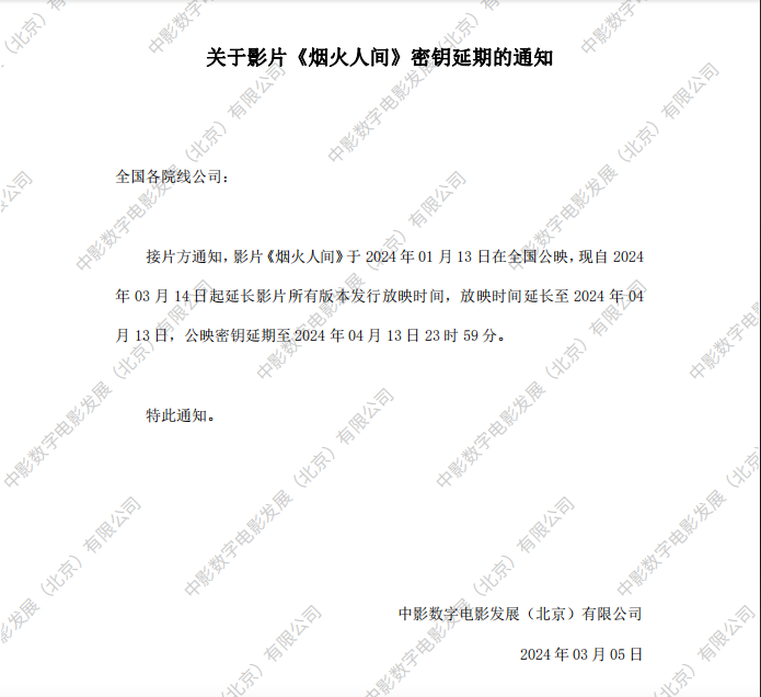 《烟火人间》第二次密钥延期的通知
