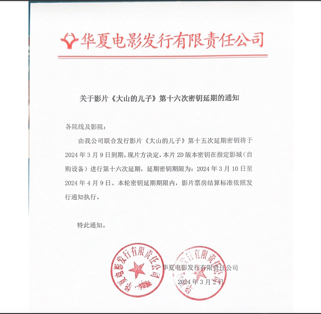 《大山的儿子》第十六次密钥延期的通知