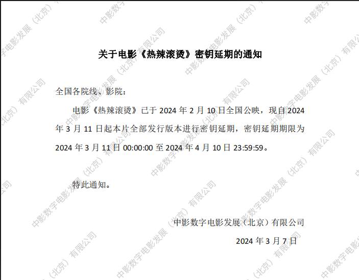 《热辣滚烫》密钥延期的通知