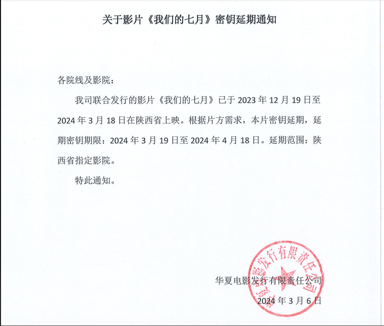 《我们的七月》密钥延期的通知