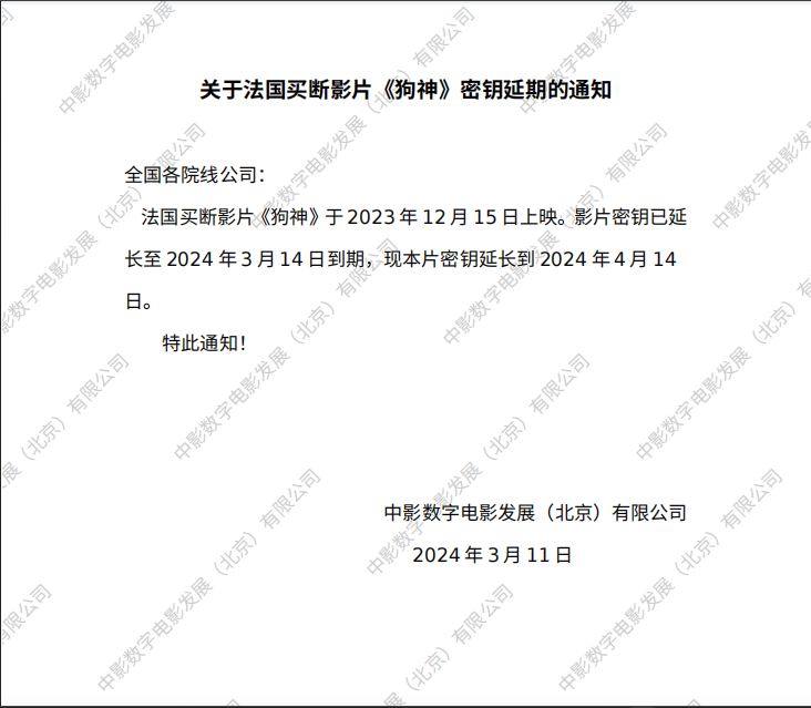 《狗神》第二次密钥延期的通知