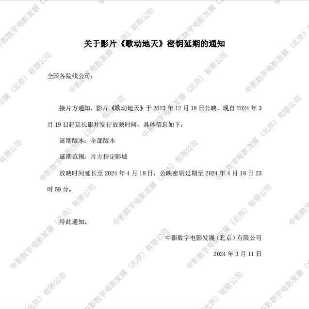 《歌动天地》第三次密钥延期的通知