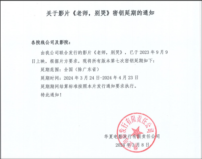 《老师,别哭》密钥延期的通知