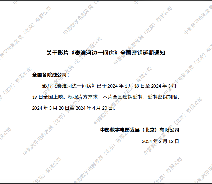 《秦淮河边一间房》密钥延期的通知
