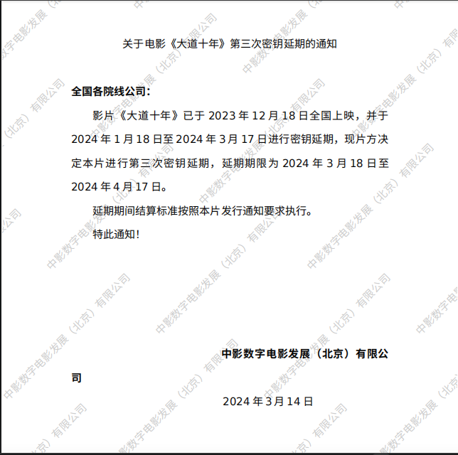 《大道十年》第三次密钥延期的通知