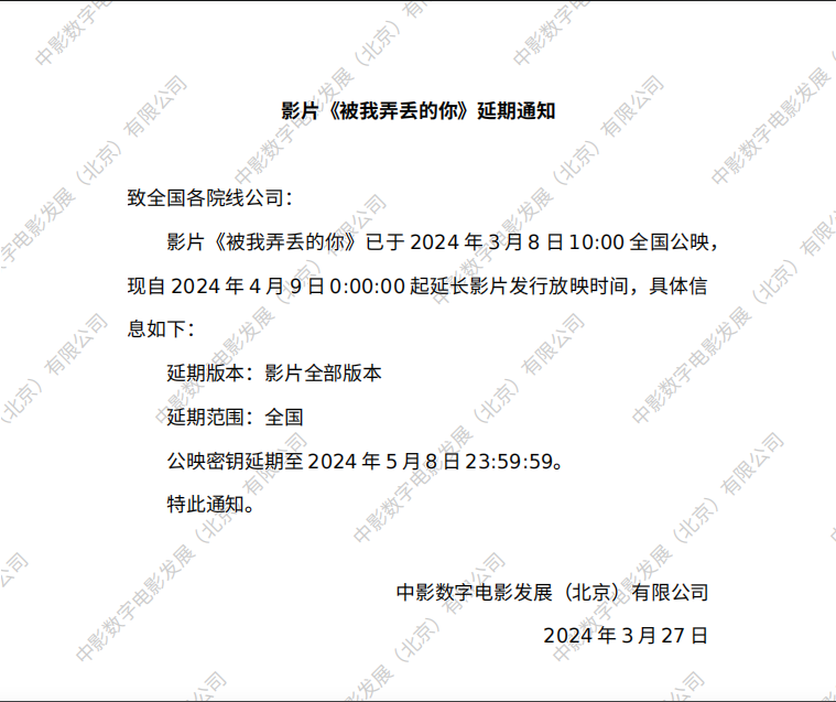 《被我弄丢的你》密钥延期的通知