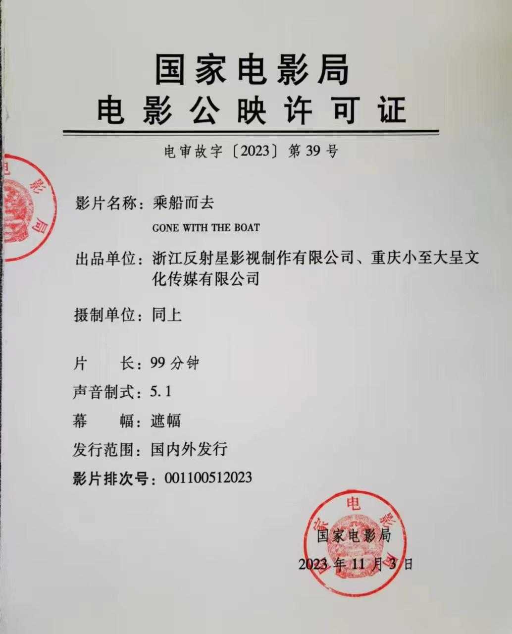 《乘船而去》发行通知
