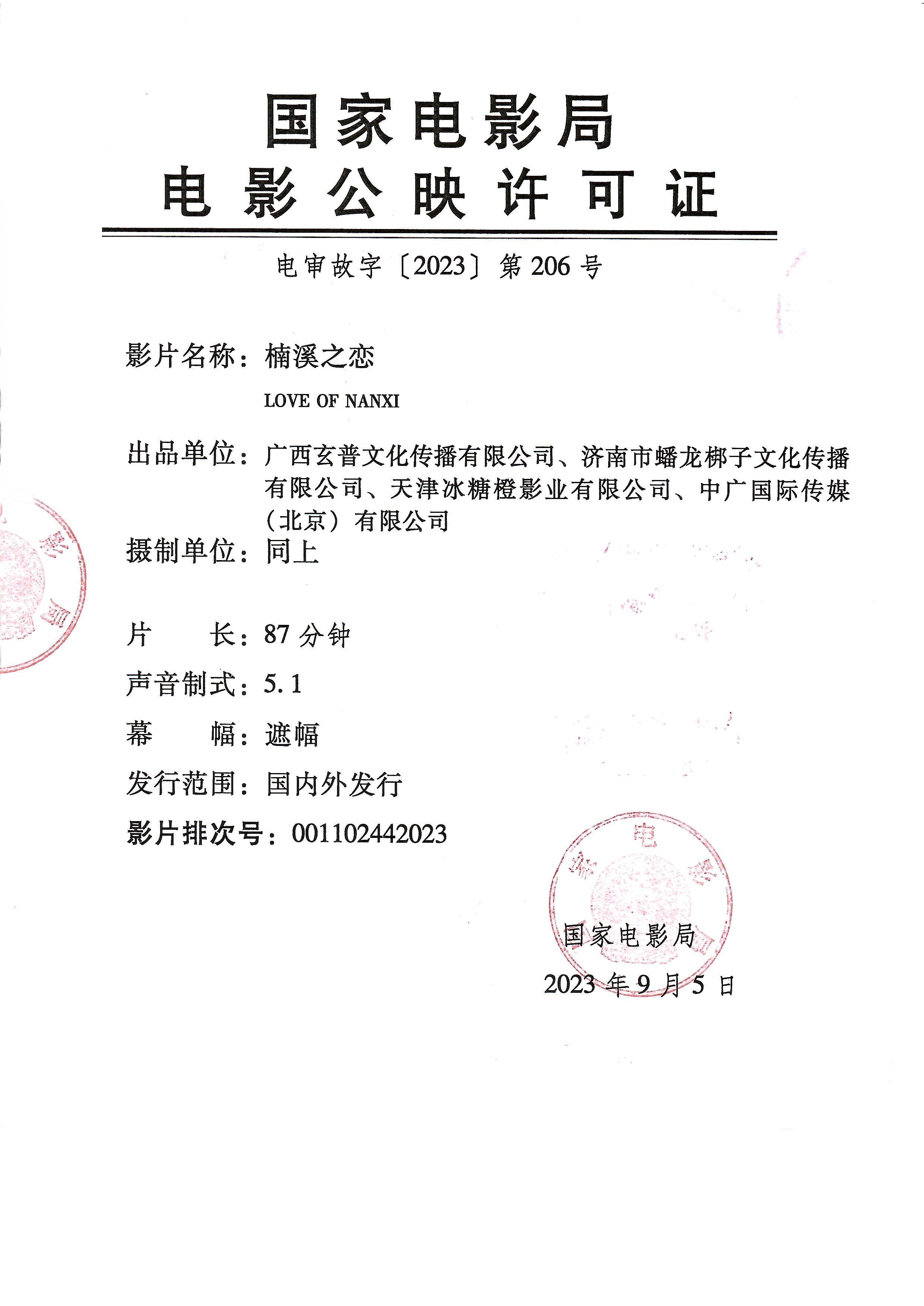 《楠溪之恋》发行通知