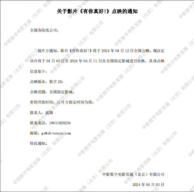 《有你真好!》点映的通知