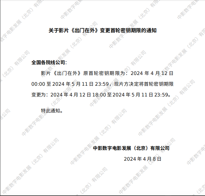 《出门在外》变更首轮密钥延期的通知