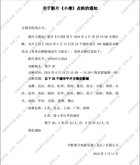 《小倩》点映的通知