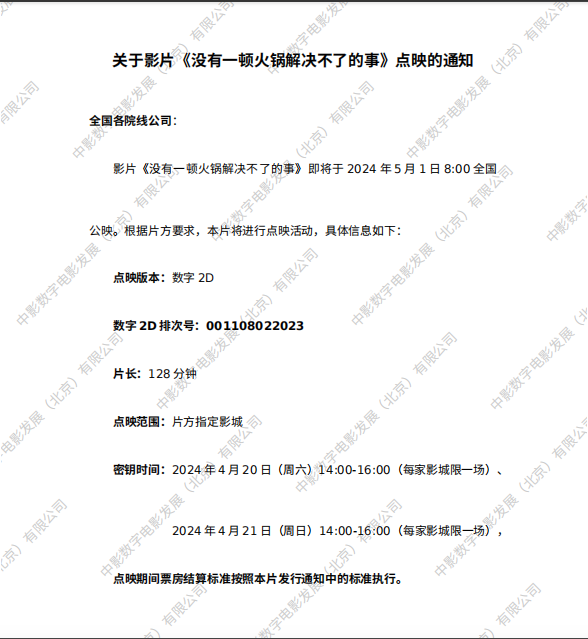 《没有一顿火锅解决不了的事》点映的通知