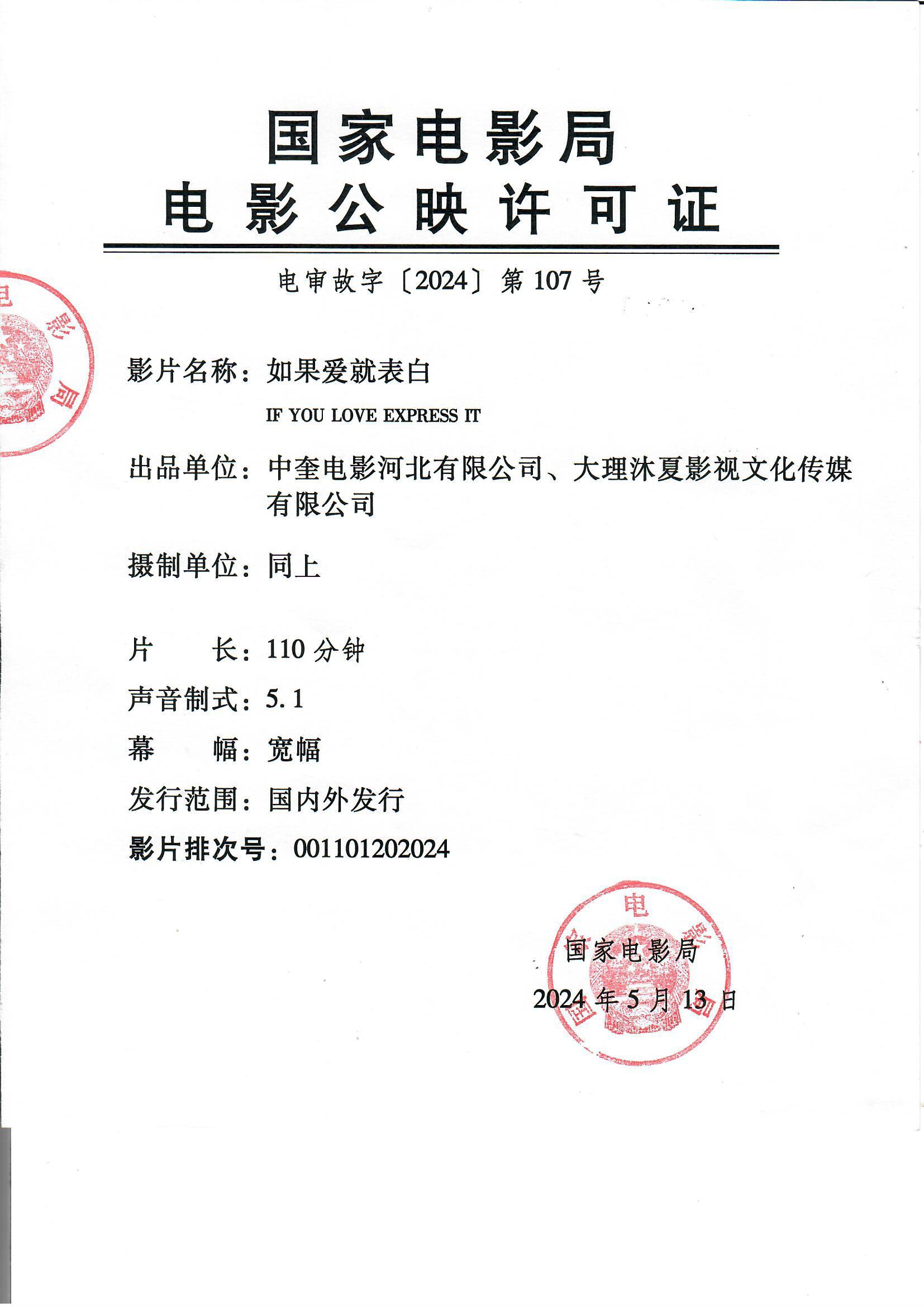 《如果爱就表白》发行通知