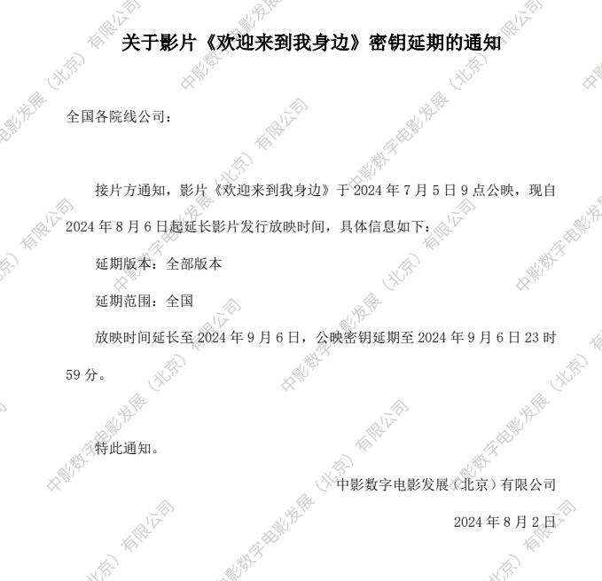 关于影片《欢迎来到我身边》密钥延期的通知