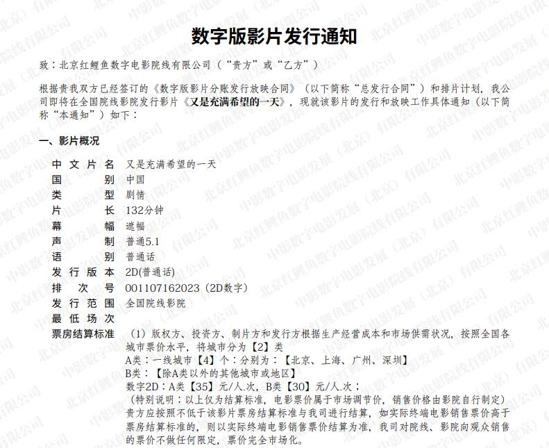 《又是充满希望的一天》发行通知