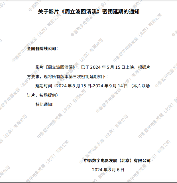 《周立波回清溪》第三次密钥延期的通知