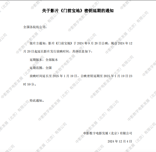《门前宝地》第三次密钥延期的通知