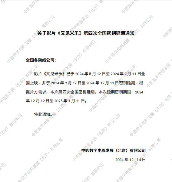 《又见米乐》第四次全国密钥延期的通知