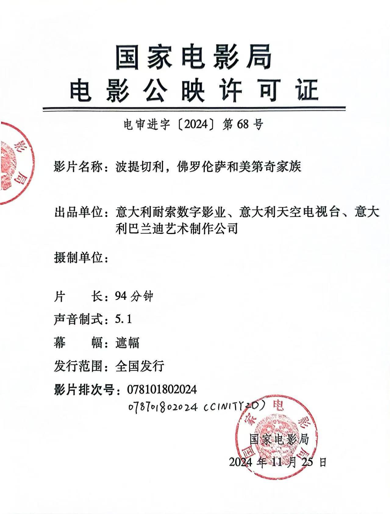 《波提切利,佛罗伦萨和美第奇家族》发行通知