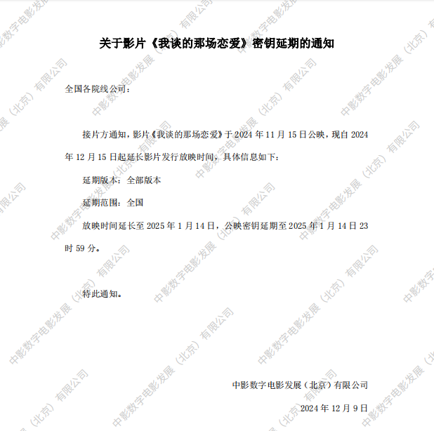 《我谈的那场恋爱》密钥延期的通知