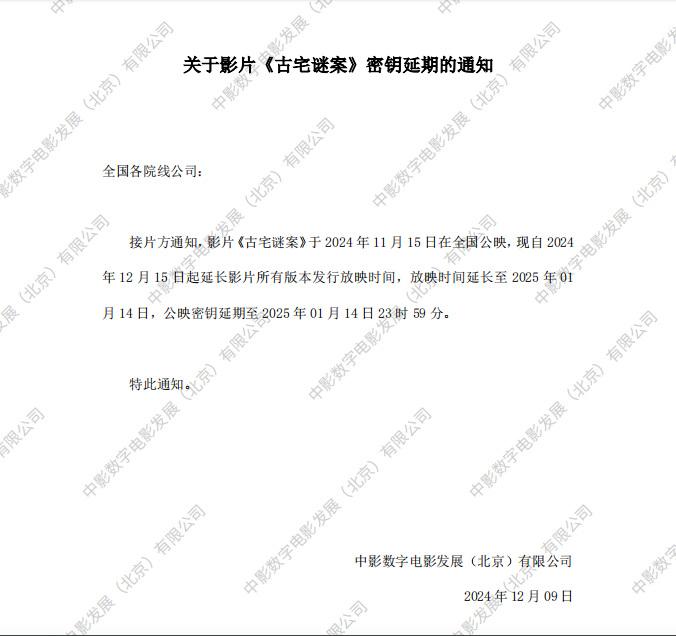 《古宅谜案》密钥延期的通知