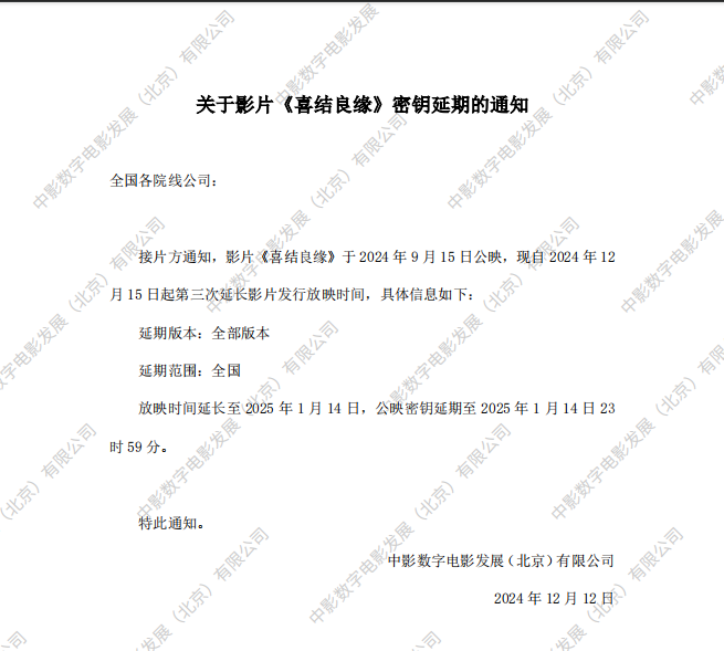 《喜结良缘》第三次密钥延期的通知