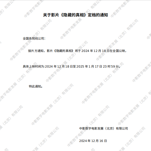 《隐藏的真相》定档的通知