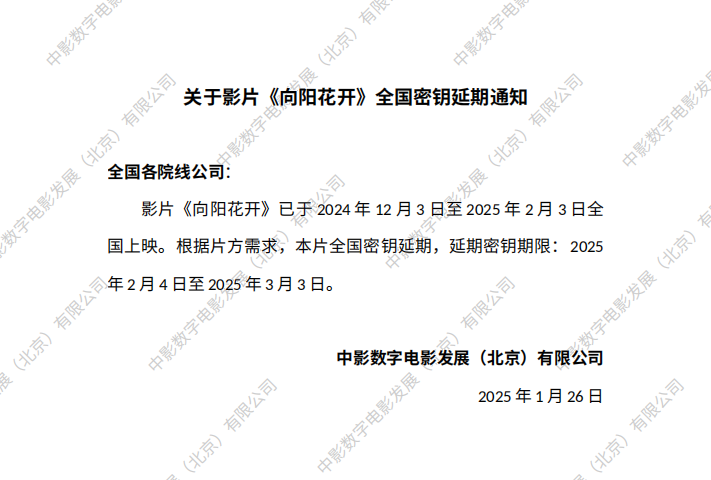 《向阳花开》全国密钥延期的通知