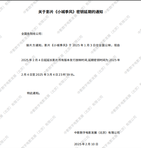 《小城季风》密钥延期的通知
