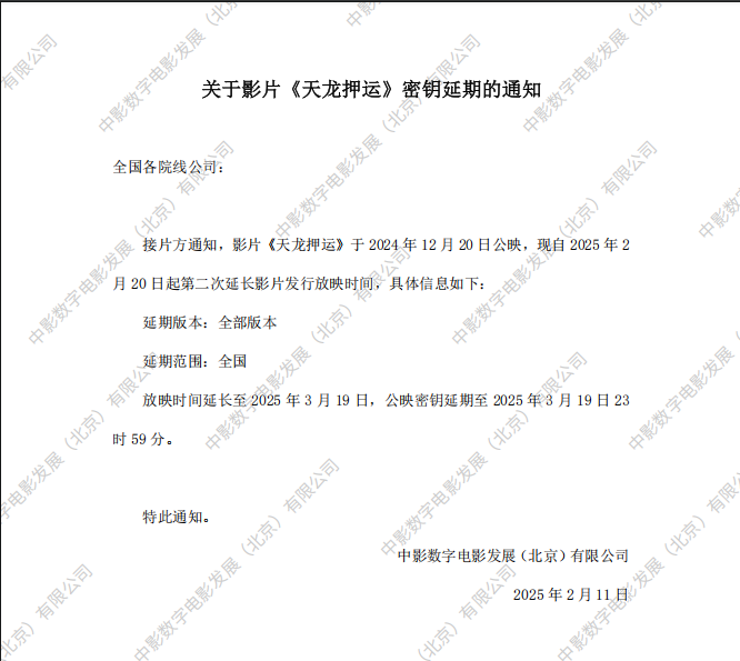 《新龙门客栈(舞台纪录电影·越剧)》第六次全国密钥延期的通知