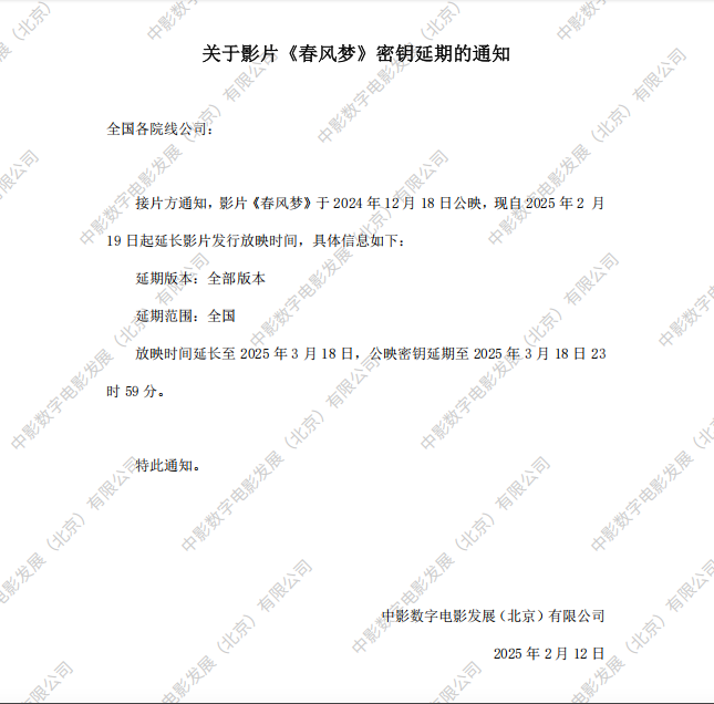 《春风梦》第二次密钥延期的通知