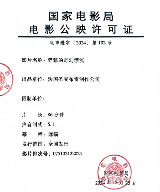 《猫猫的奇幻漂流》发行通知