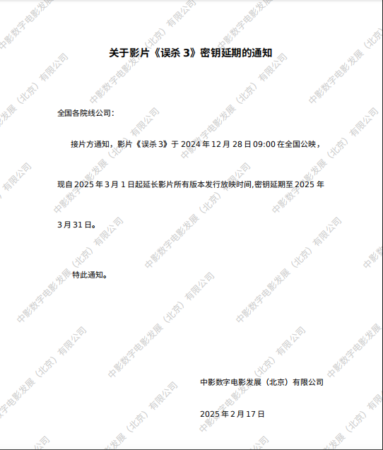 《误杀3》第二次密钥延期的通知