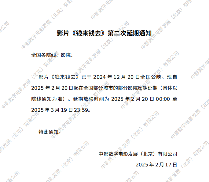《钱来钱去》第二次密钥延期的通知