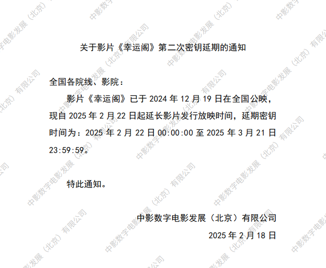 《幸运阁》第二次密钥延期的通知