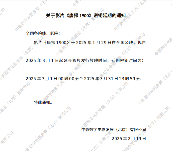 《唐探1900》密钥延期的通知