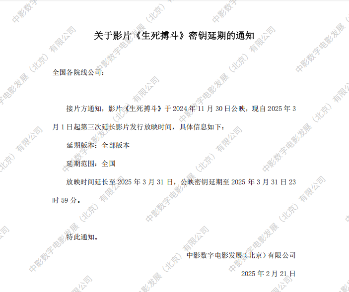 《生死搏斗》第三次密钥延期的通知