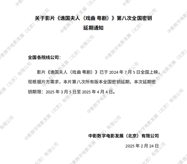 《谯国夫人(戏曲 粤剧)》第八次全国密钥延期的通知
