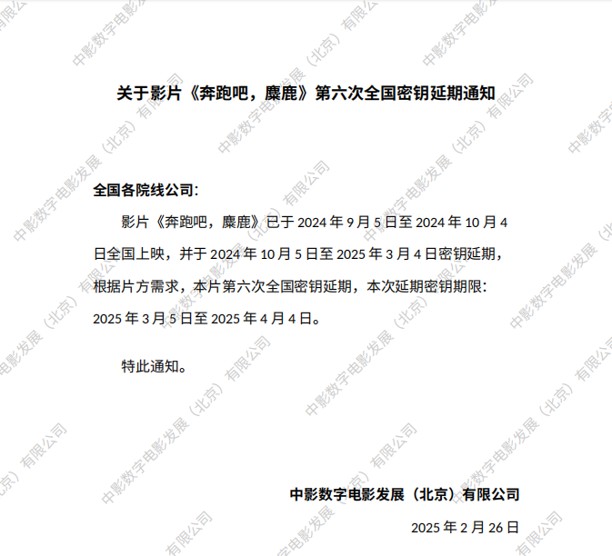 《奔跑吧,麋鹿》第六次全国密钥延期的通知