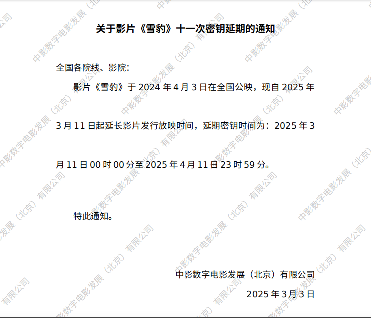 《雪豹》第十一次密钥延期的通知