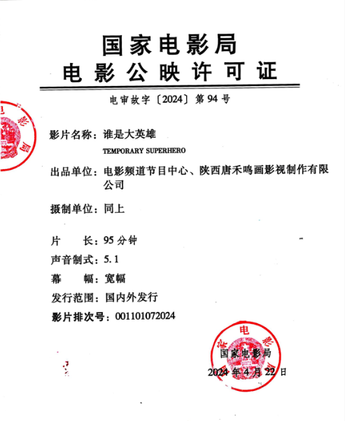 出 品:电影频道节目中心、陕西唐禾鸣画影视制作有限公司