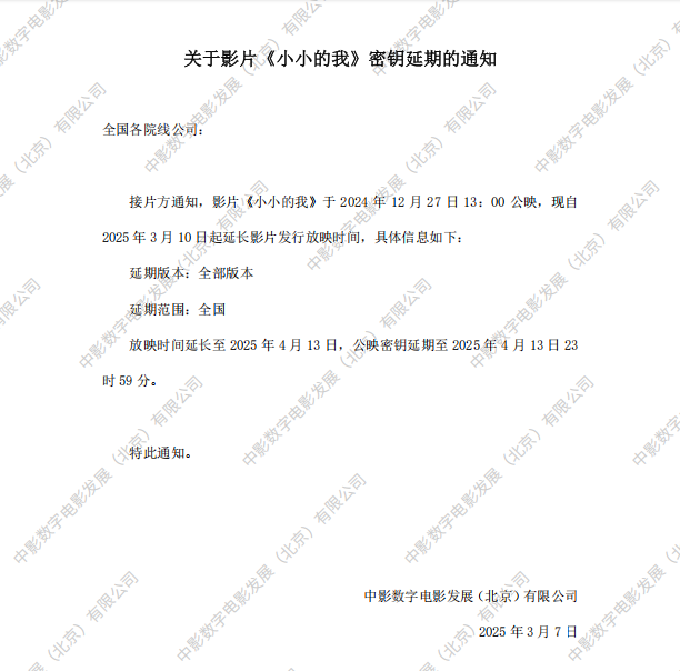 《小小的我》第二次密钥延期的通知
