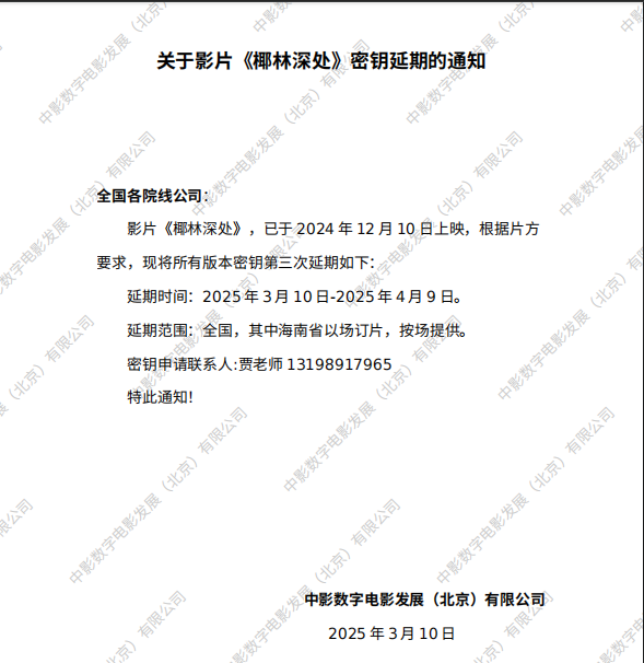 《椰林深处》第三次密钥延期的通知
