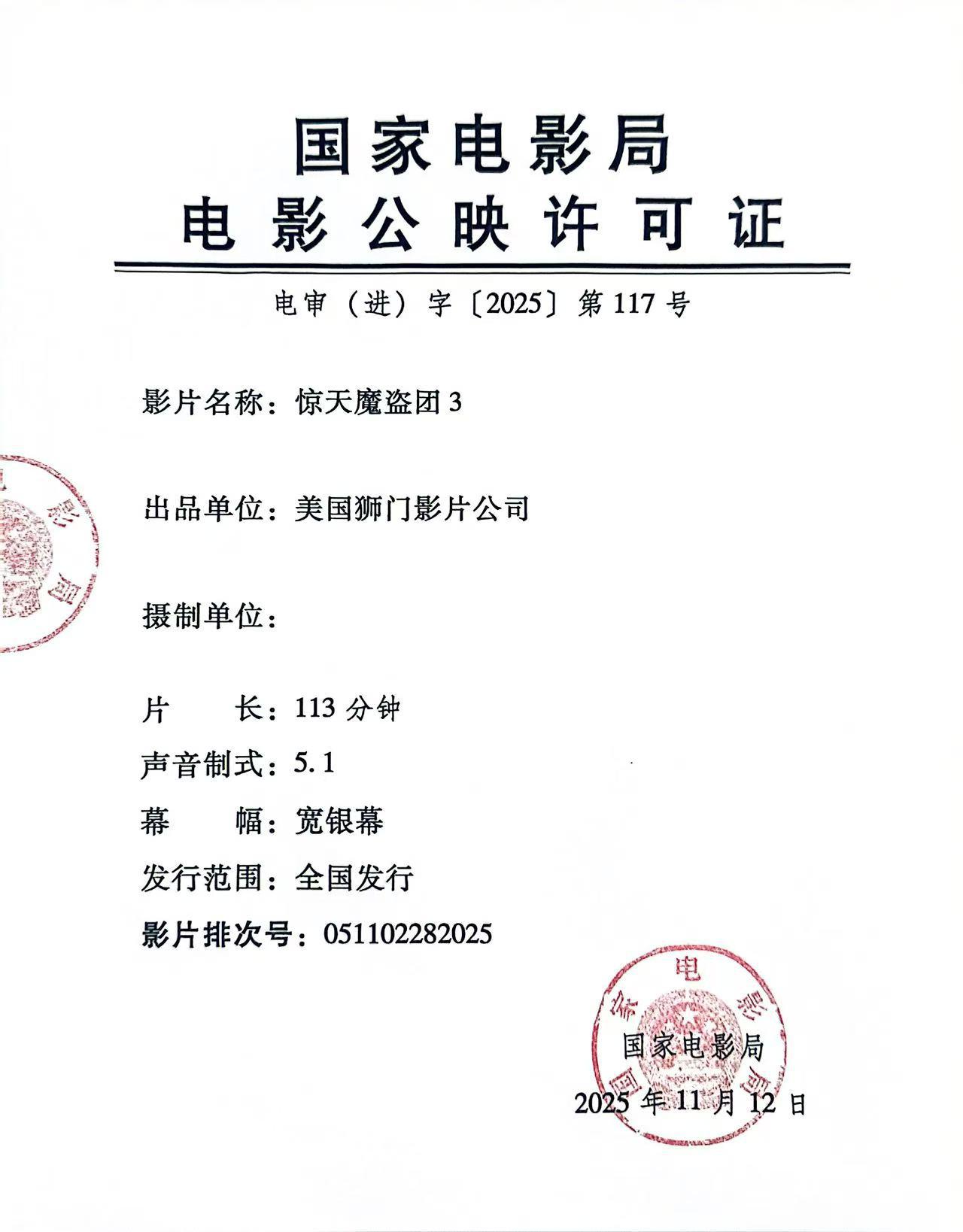《惊天魔盗团3》发行通知