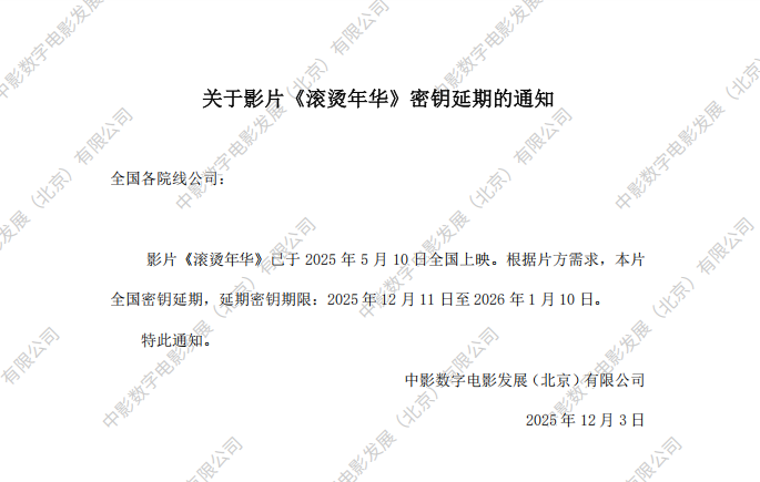 《滚烫年华》密钥延期的通知