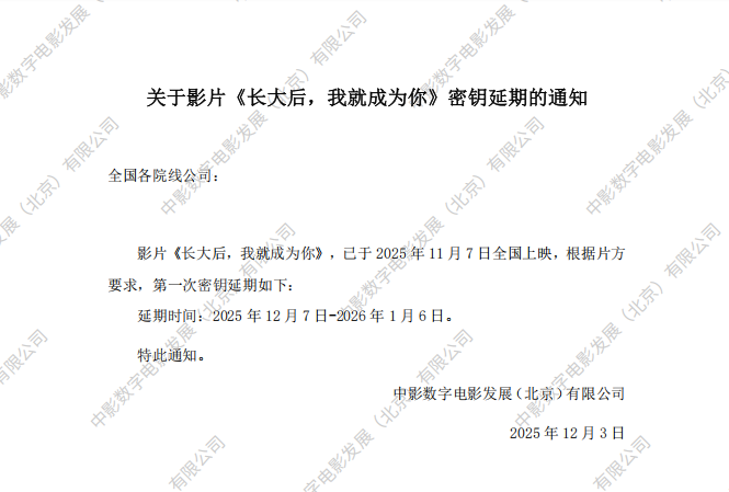 《罗帕记(戏曲 黄梅戏)》密钥延期的通知
